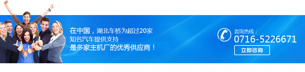 湖北車橋與江淮重卡、輕卡、客車、底盤、專用車都是18年來的前后橋總成主供應商之一,江淮公司對湖北車橋前后橋總成的新產品開發(fā)周期短、速比齊全、噪音低、交付及時、售后服務到位給予了高度評價,年供貨量達到1...